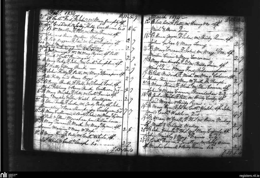 Castlegar; County of Galway; Diocese of Galway. Baptisms, Feb. 1834 to Mar. 1834