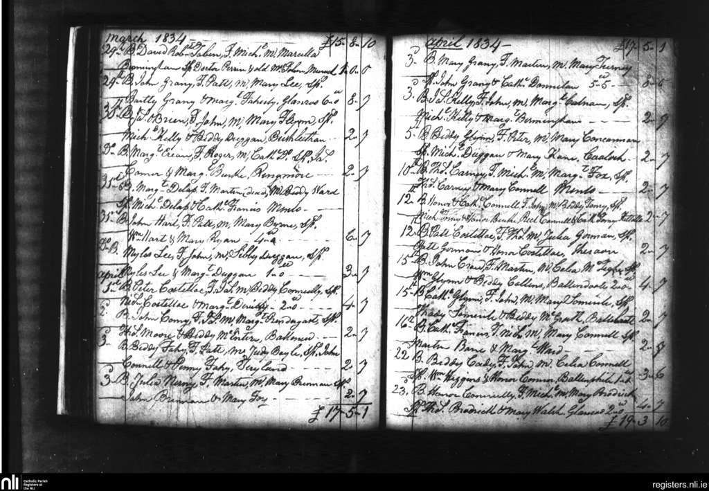 Castlegar; County of Galway; Diocese of Galway. Baptisms, Mar. 1834 to Apr. 1834