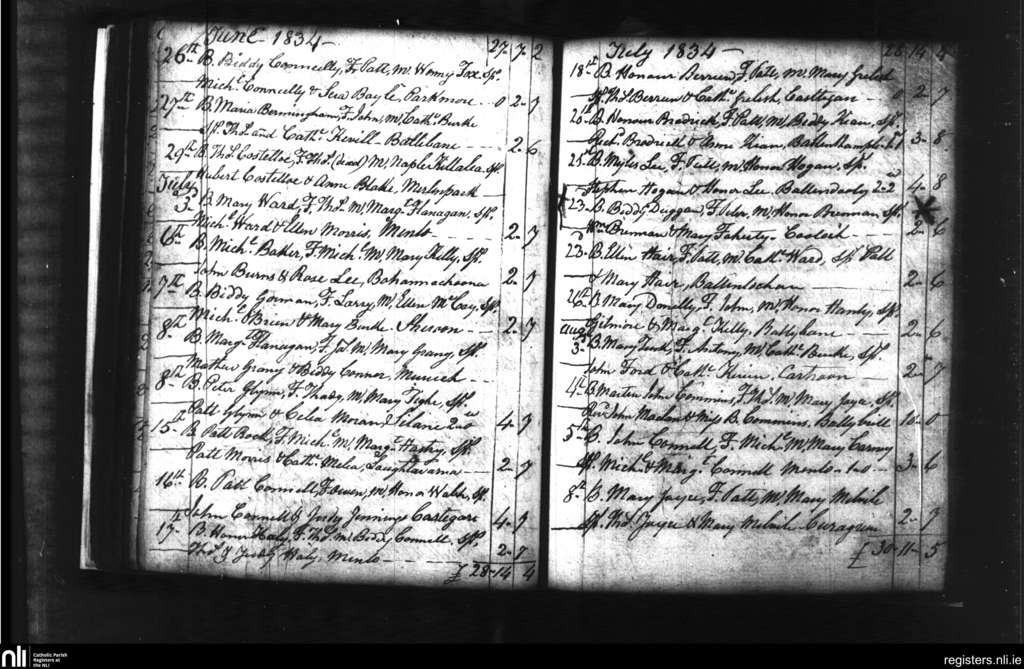 Castlegar; County of Galway; Diocese of Galway. Baptisms, June 1834 to Aug. 1834