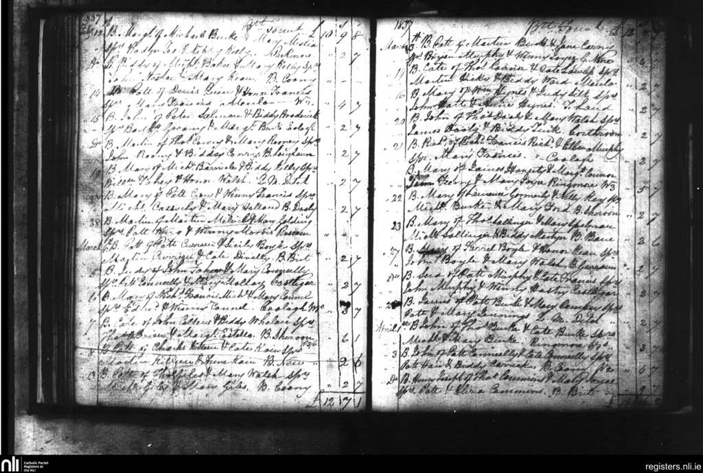Castlegar; County of Galway; Diocese of Galway. Baptisms, Feb. 1837 to Apr. 1837