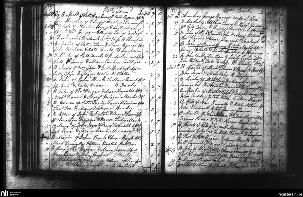 Castlegar; County of Galway; Diocese of Galway. Baptisms, Sep. 1837 to Nov. 1837