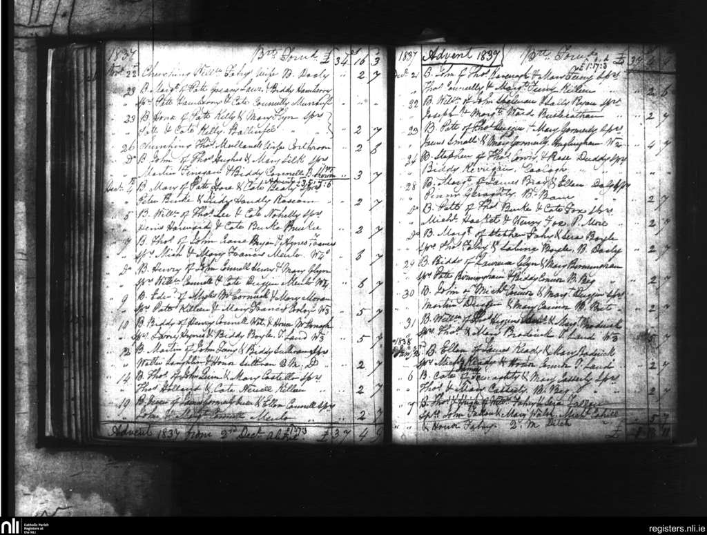Castlegar; County of Galway; Diocese of Galway. Baptisms, Nov. 1837 to Jan. 1838