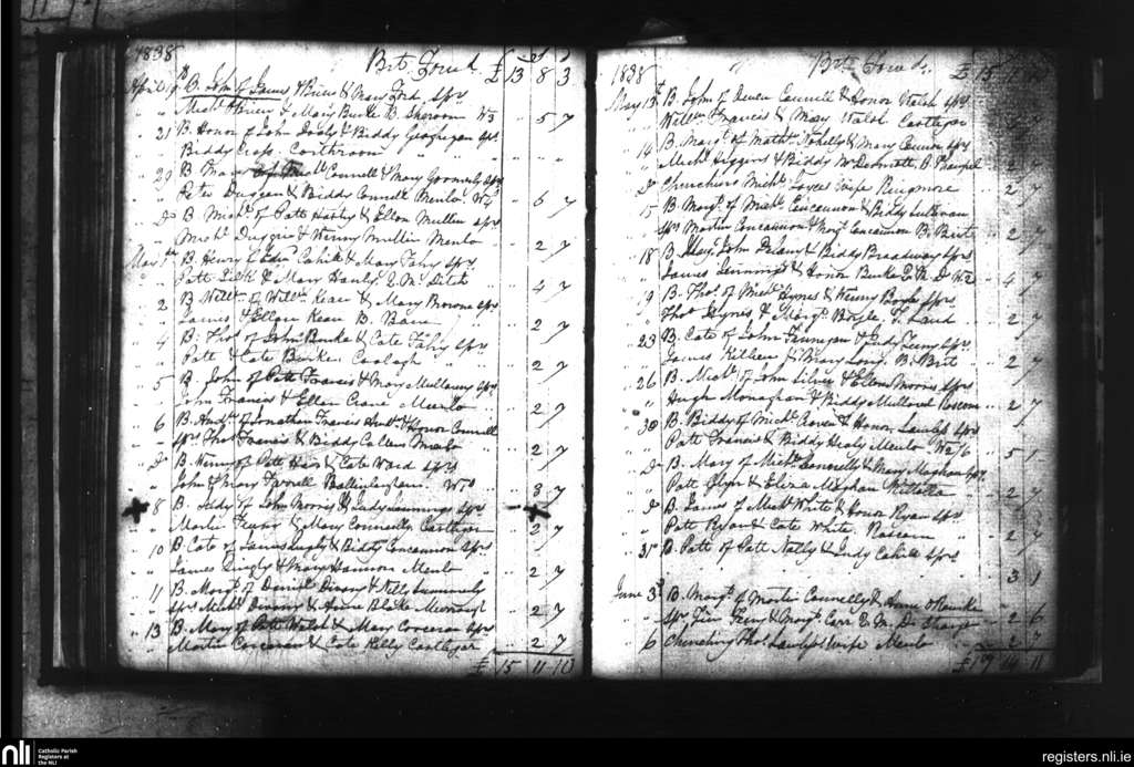 Castlegar; County of Galway; Diocese of Galway. Baptisms, Apr. 1838 to June 1838