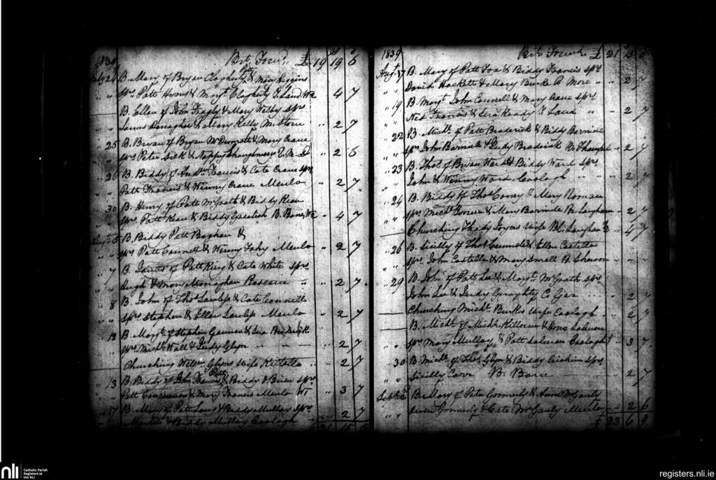 Castlegar; County of Galway; Diocese of Galway. Baptisms, July 1839 to Sep. 1839