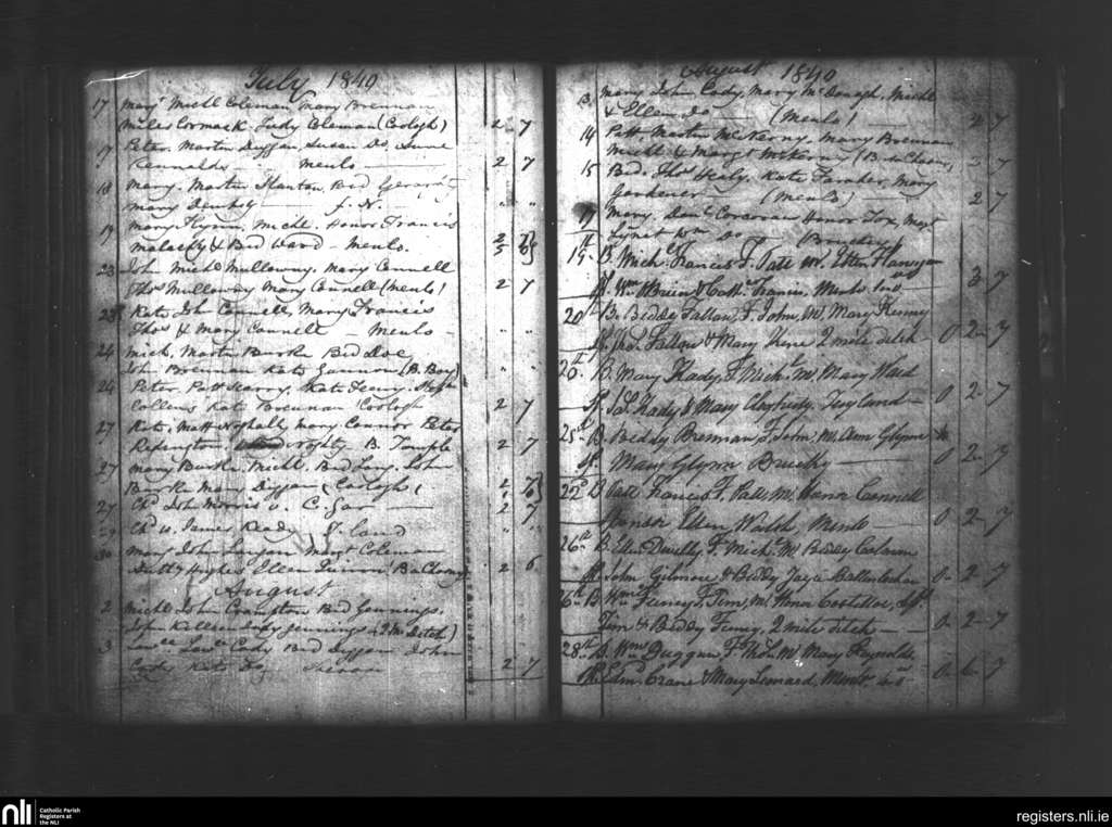 Castlegar; County of Galway; Diocese of Galway. Baptisms, July 1840 to Aug. 1840