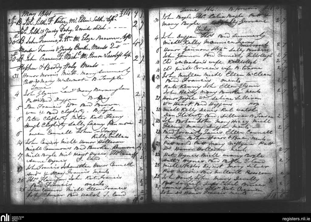 Castlegar; County of Galway; Diocese of Galway. Baptisms, May 1841 to June 1841