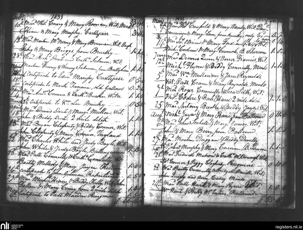Castlegar; County of Galway; Diocese of Galway. Marriages, Feb. 1831 to Sep. 1831