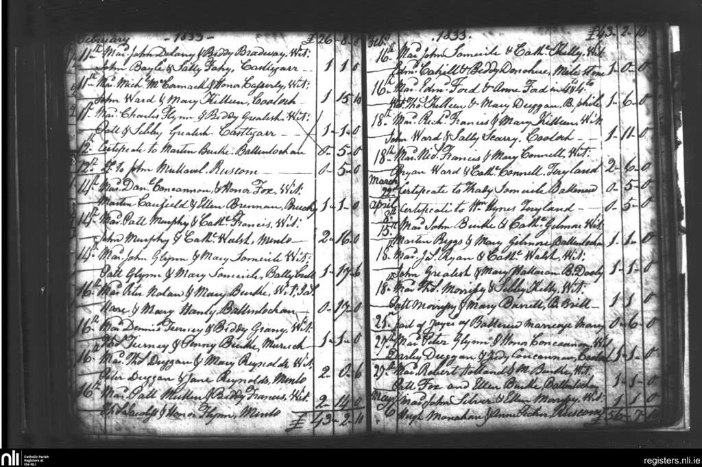 Castlegar; County of Galway; Diocese of Galway. Marriages, Feb. 1833 to May 1833