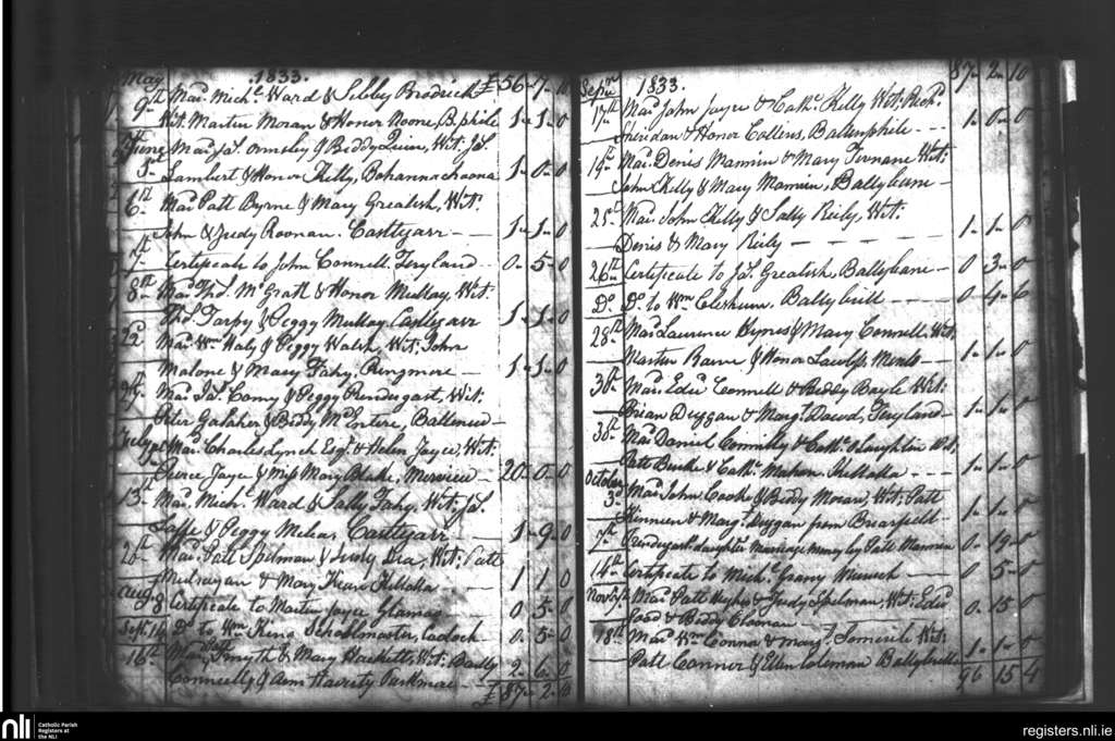 Castlegar; County of Galway; Diocese of Galway. Marriages, May 1833 to Nov. 1833