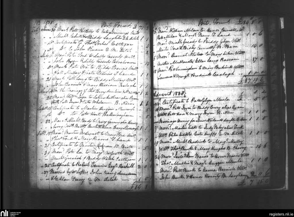 Castlegar; County of Galway; Diocese of Galway. Marriages, June 1838 to Jan. 1839
