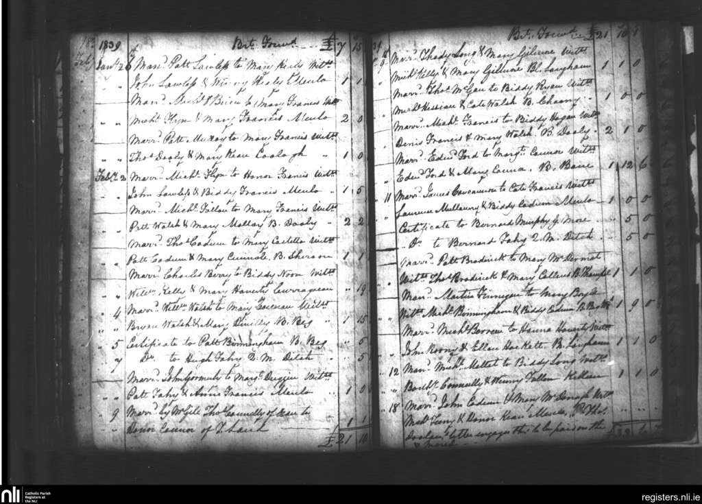 Castlegar; County of Galway; Diocese of Galway. Marriages, Jan. 1839 to Feb. 1839
