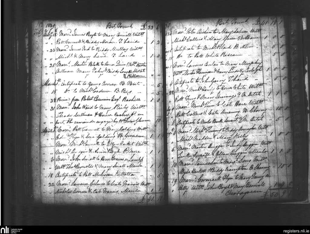 Castlegar; County of Galway; Diocese of Galway. Marriages, Feb. 1839 to Aug. 1839