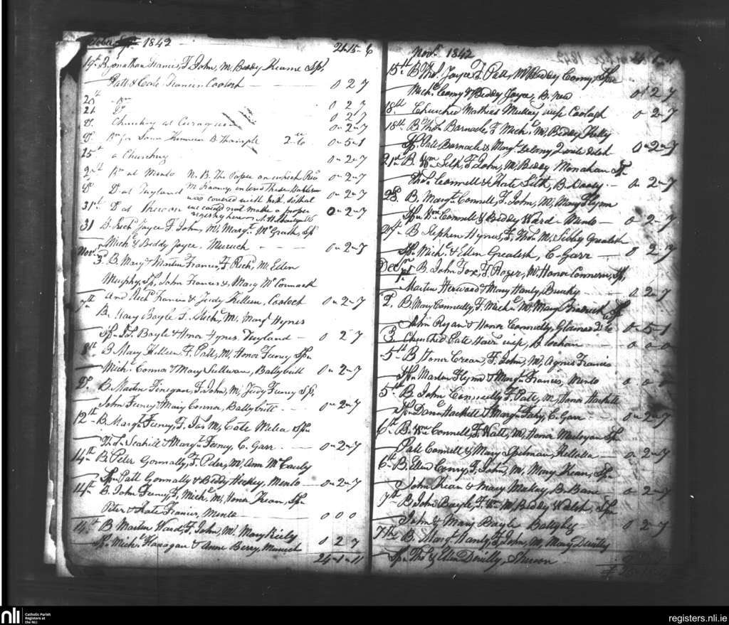 Castlegar; County of Galway; Diocese of Galway. Baptisms, Oct. 1842 to Dec. 1842