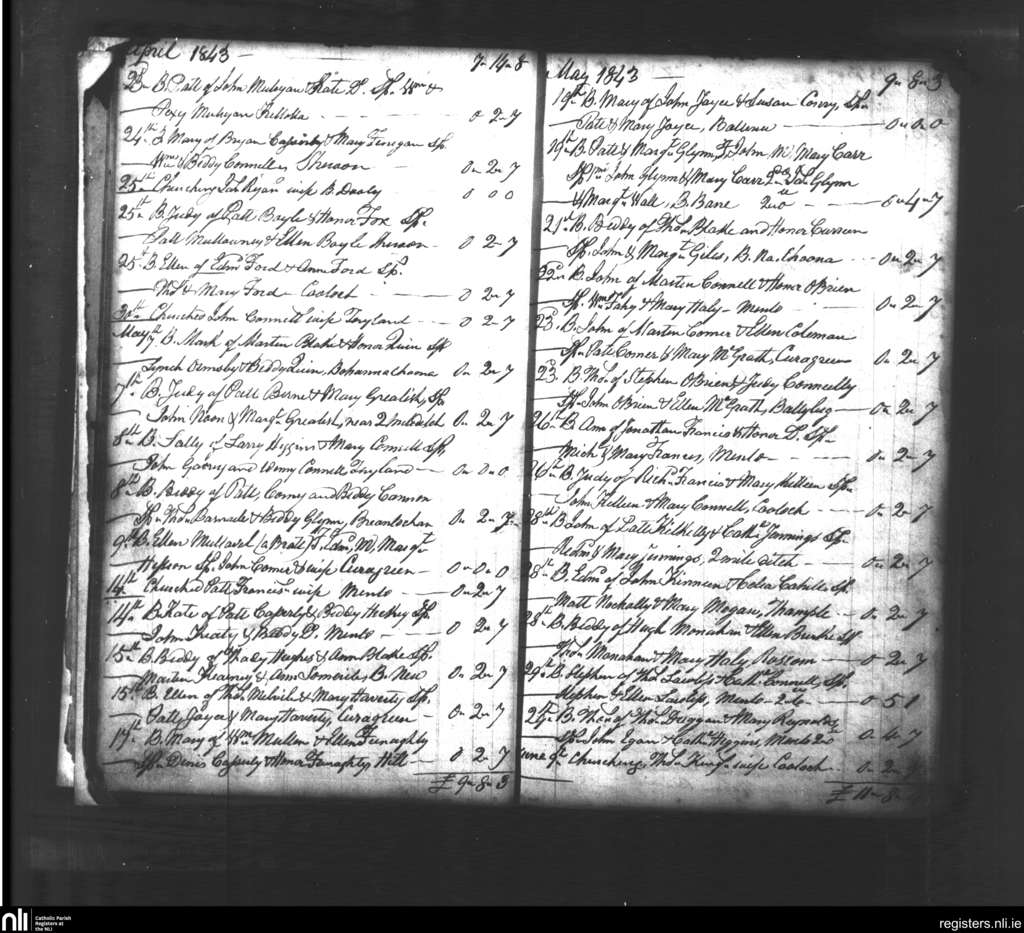 Castlegar; County of Galway; Diocese of Galway. Baptisms, Apr. 1843 to June 1843