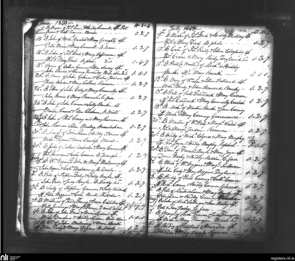 Castlegar; County of Galway; Diocese of Galway. Baptisms, June 1843 to Aug. 1843