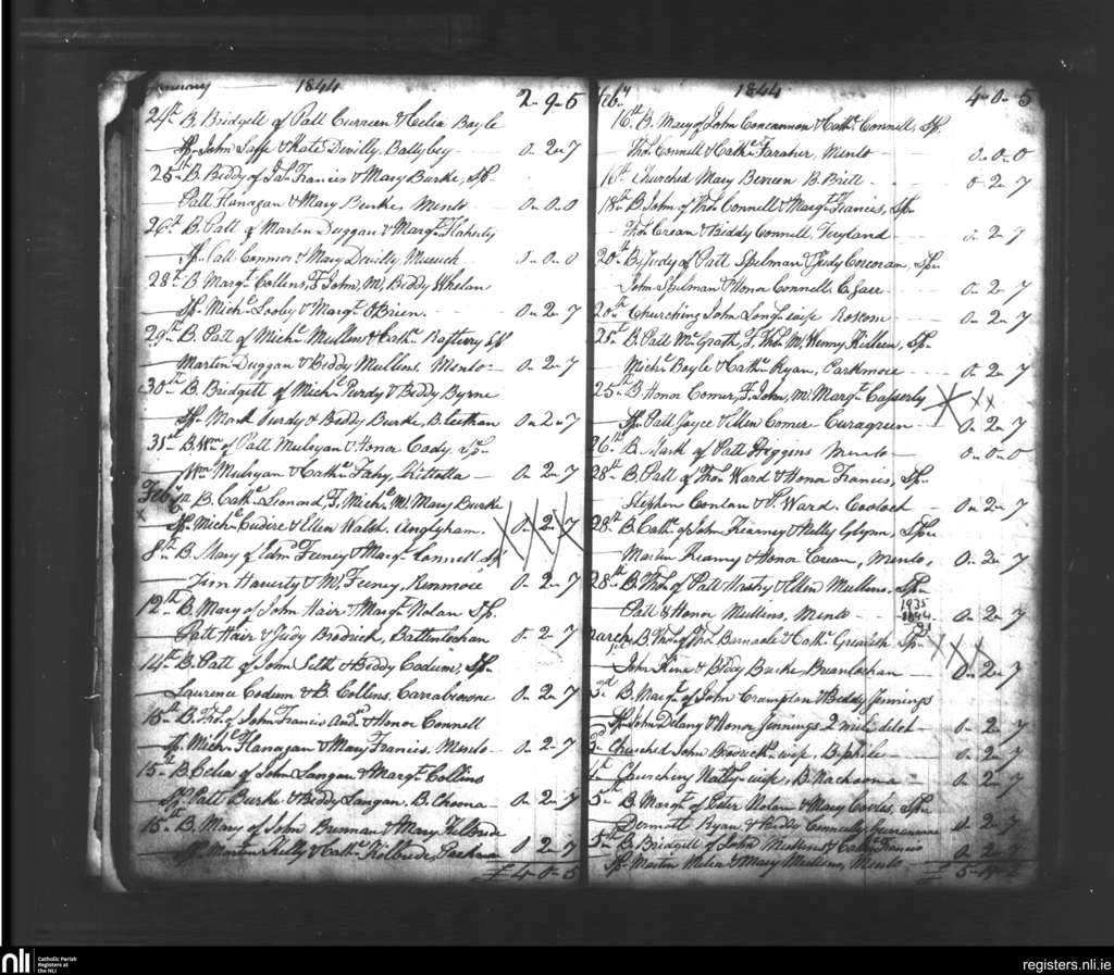 Castlegar; County of Galway; Diocese of Galway. Baptisms, Jan. 1844 to Mar. 1844