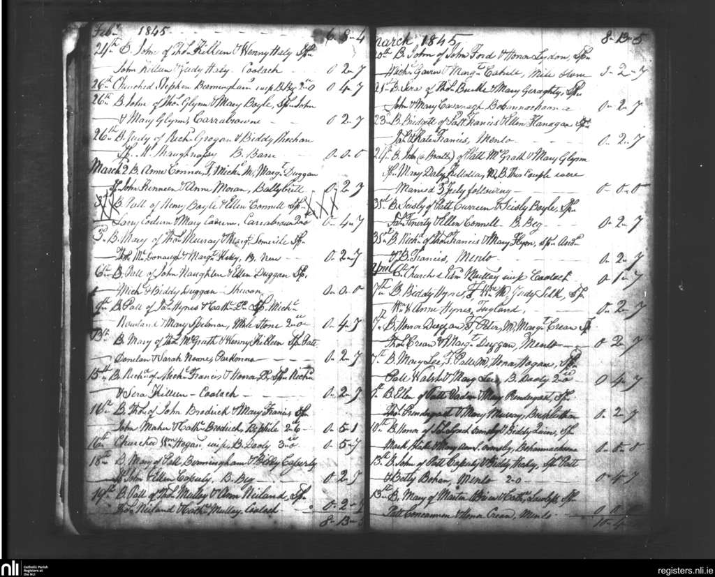 Castlegar; County of Galway; Diocese of Galway. Baptisms, Feb. 1845 to Apr. 1845