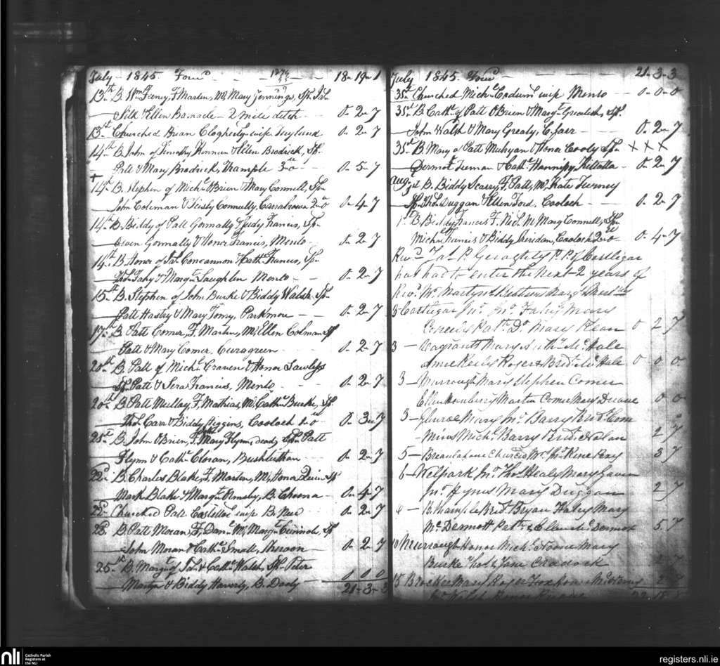 Castlegar; County of Galway; Diocese of Galway. Baptisms, July 1845 to Aug. 1845