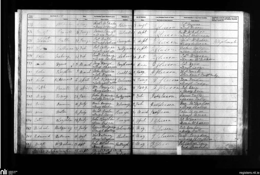 Carron; County of Clare; Diocese of Galway. Baptisms, Aug. 1864 to May 1865