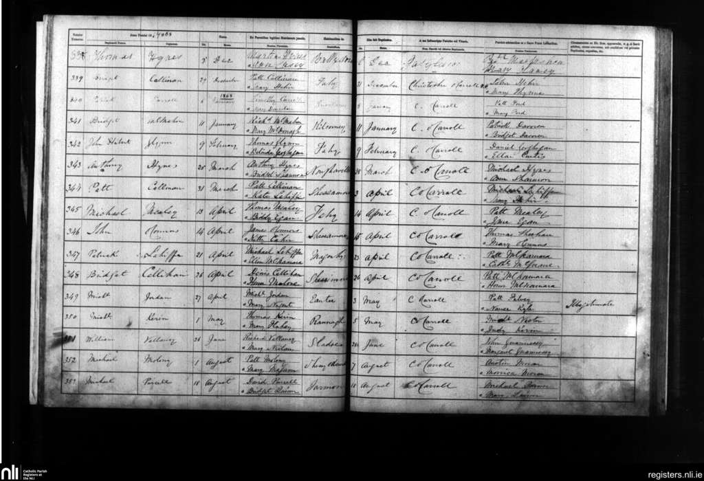 Carron; County of Clare; Diocese of Galway. Baptisms, Dec. 1867 to Aug. 1868