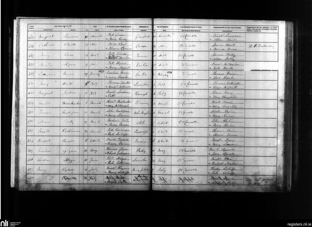 Carron; County of Clare; Diocese of Galway. Baptisms, Nov. 1871 to July 1872
