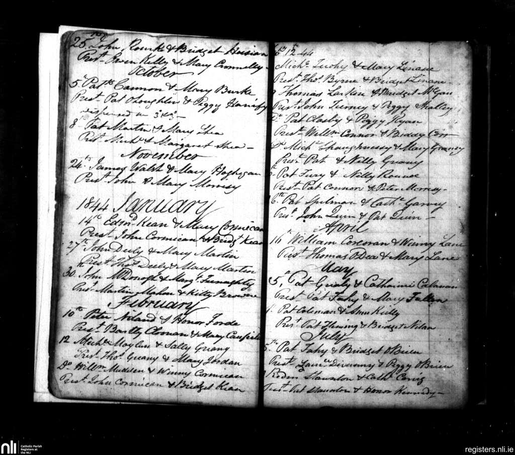 Clarenbridge; County of Galway; Diocese of Galway. Marriages, Sep. 1843 to July 1844