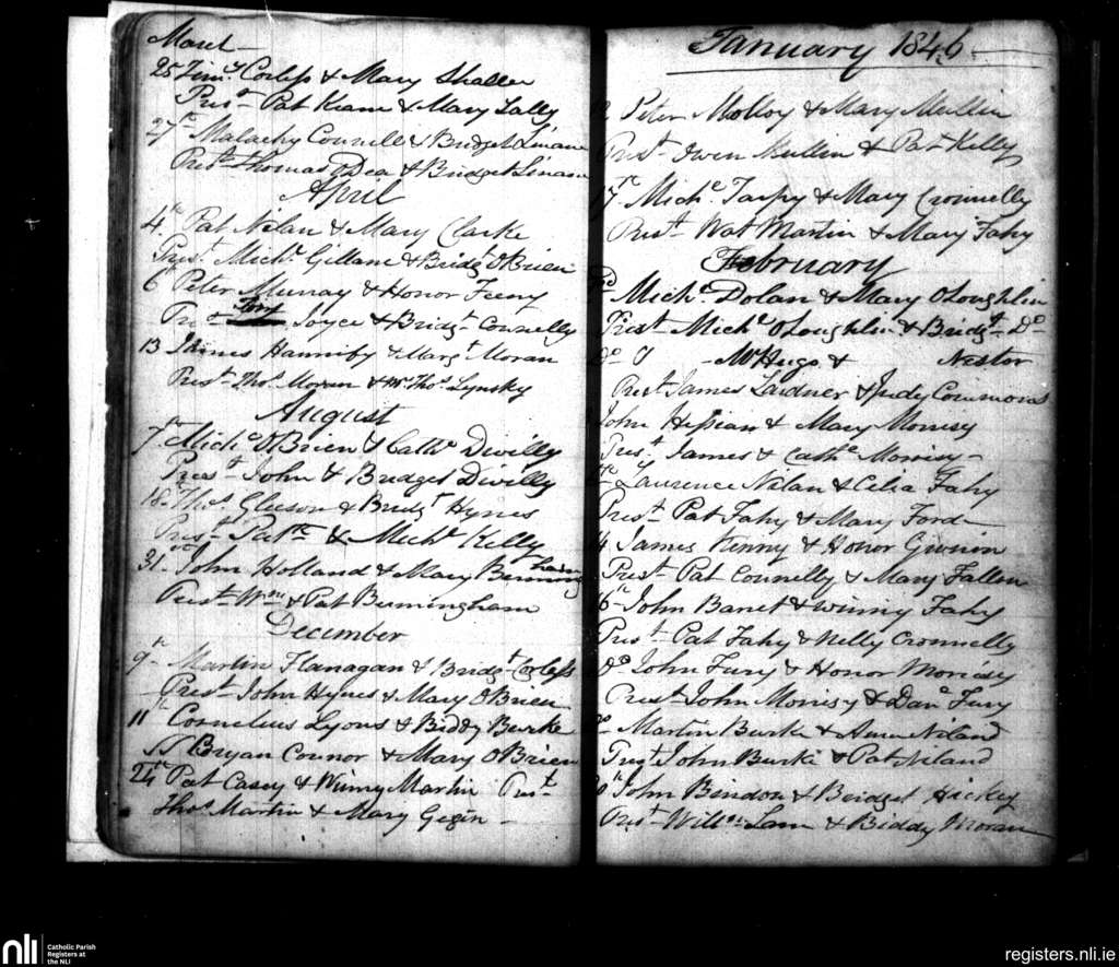 Clarenbridge; County of Galway; Diocese of Galway. Marriages, Mar. 1845 to Feb. 1846