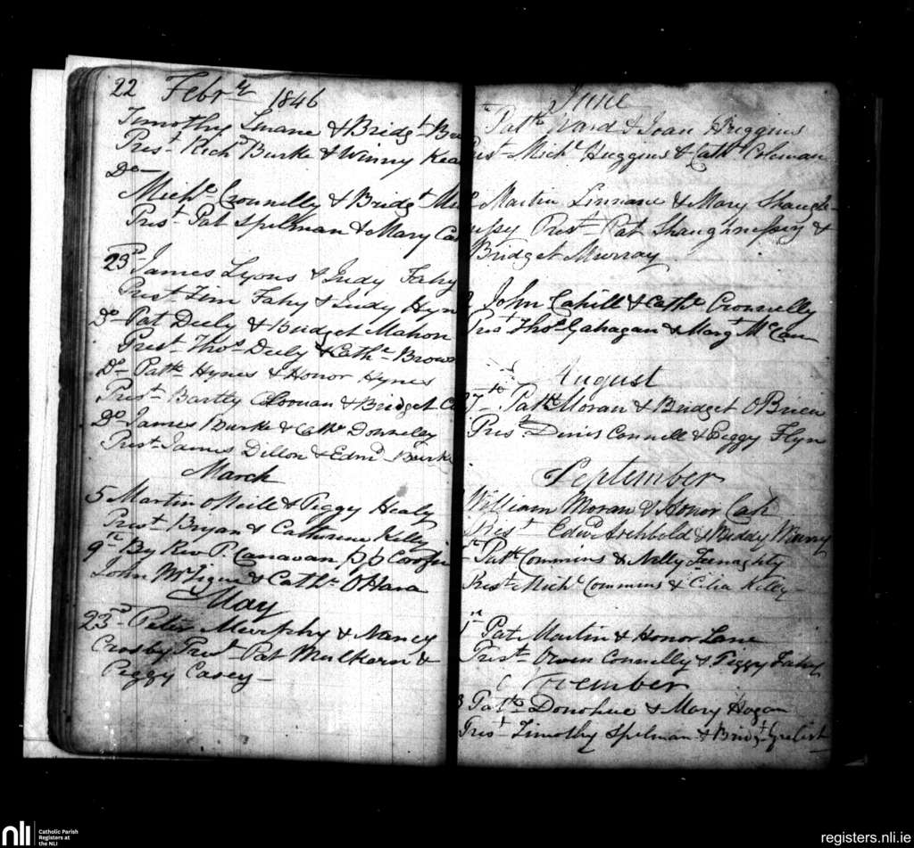 Clarenbridge; County of Galway; Diocese of Galway. Marriages, Feb. 1846 to Nov. 1846