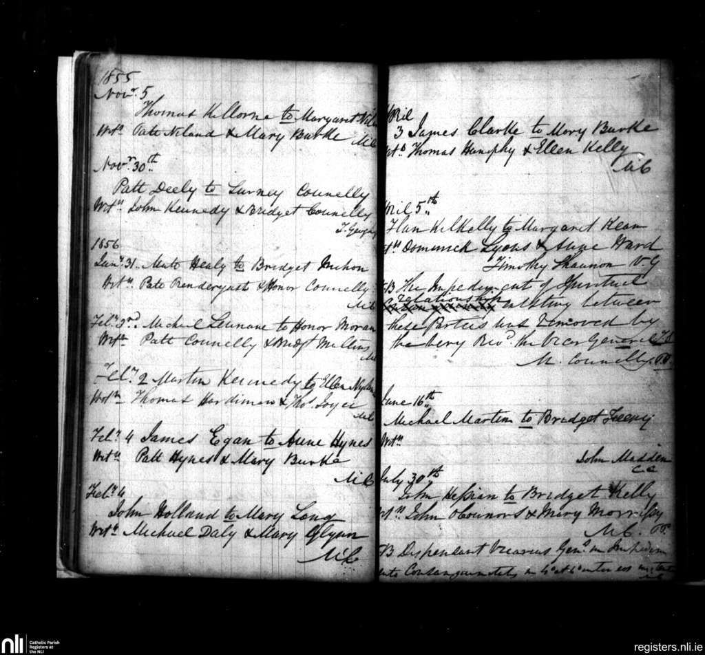 Clarenbridge; County of Galway; Diocese of Galway. Marriages, Nov. 1855 to July 1856