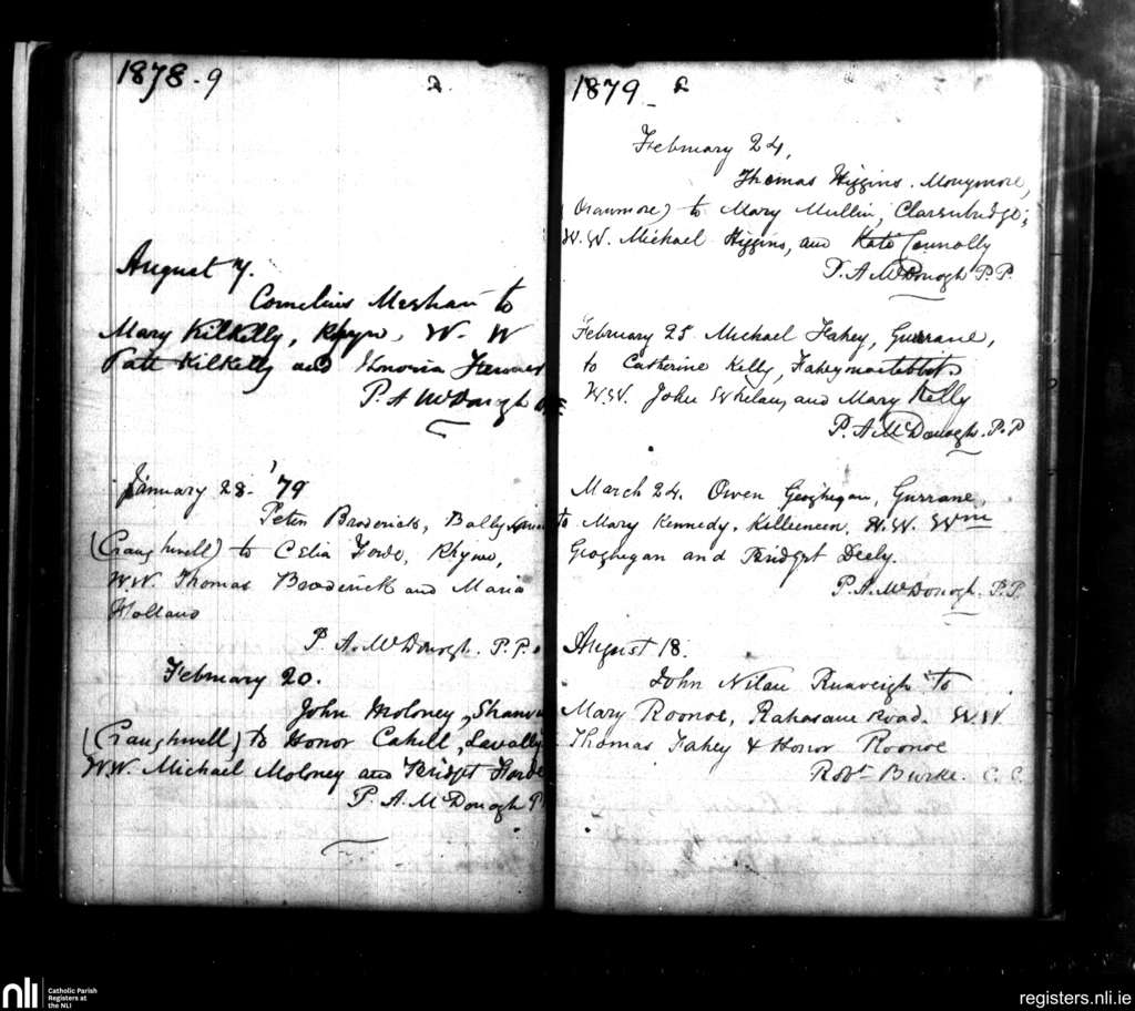 Clarenbridge; County of Galway; Diocese of Galway. Marriages, Aug. 1878 to Aug. 1879