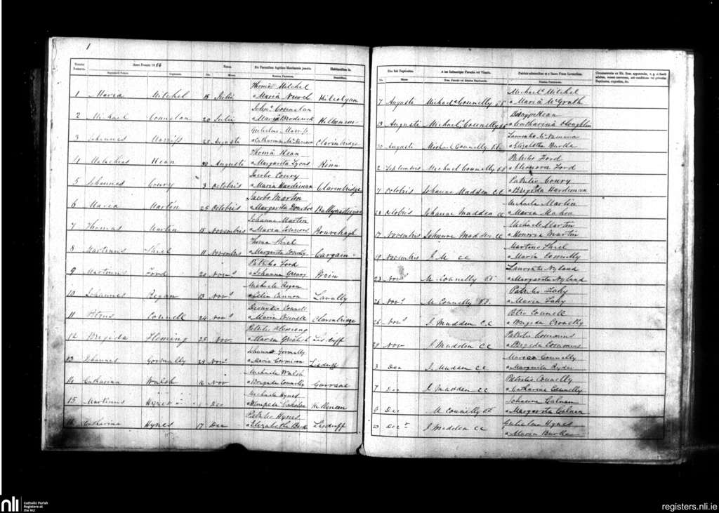 Clarenbridge; County of Galway; Diocese of Galway. Baptisms, Aug. 1854 to Dec. 1854