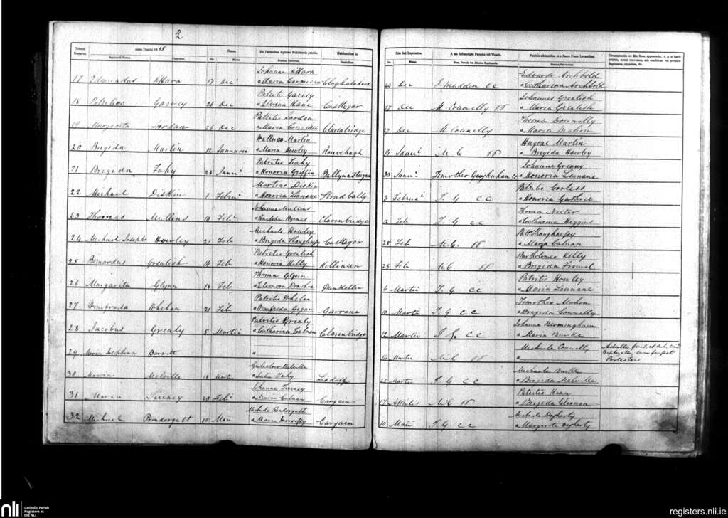 Clarenbridge; County of Galway; Diocese of Galway. Baptisms, Dec. 1854 to May 1855
