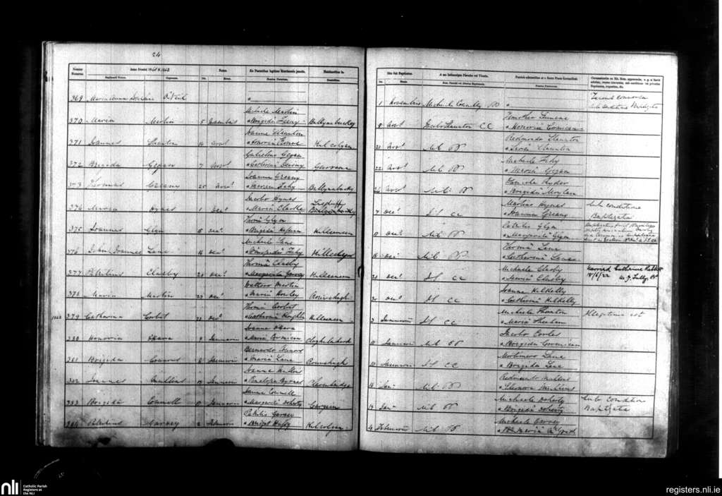 Clarenbridge; County of Galway; Diocese of Galway. Baptisms, Nov. 1861 to Feb. 1862