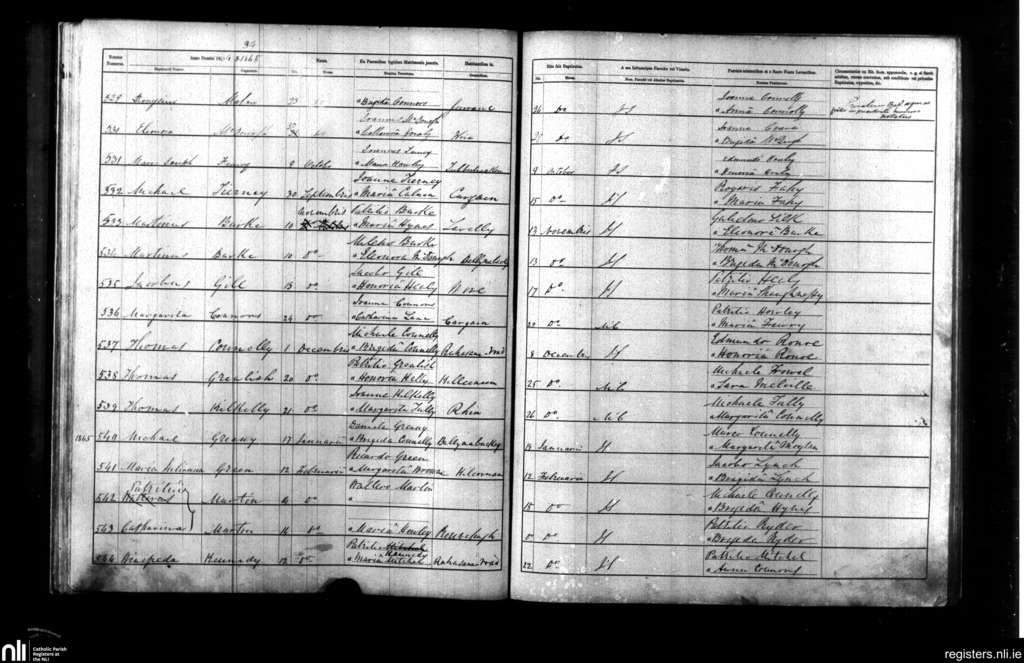 Clarenbridge; County of Galway; Diocese of Galway. Baptisms, Sep. 1864 to Feb. 1865