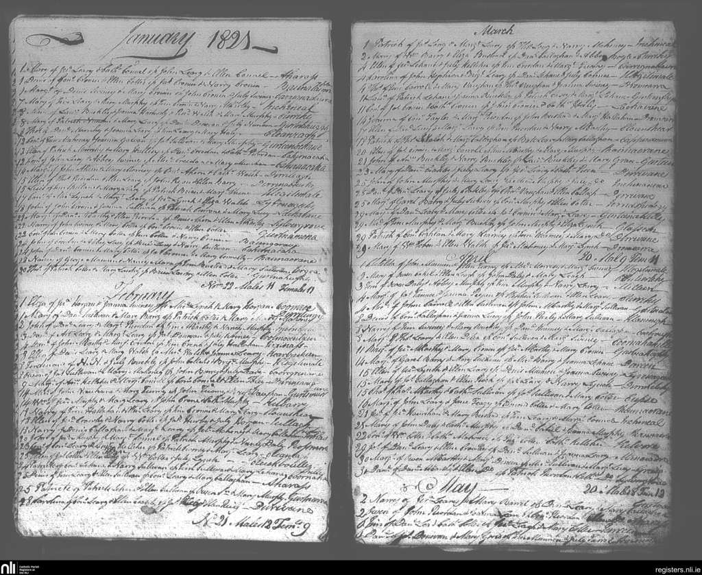 Iveleary; County of Cork; Diocese of Cork and Ross. Baptisms, Jan. 1821 to May 1821