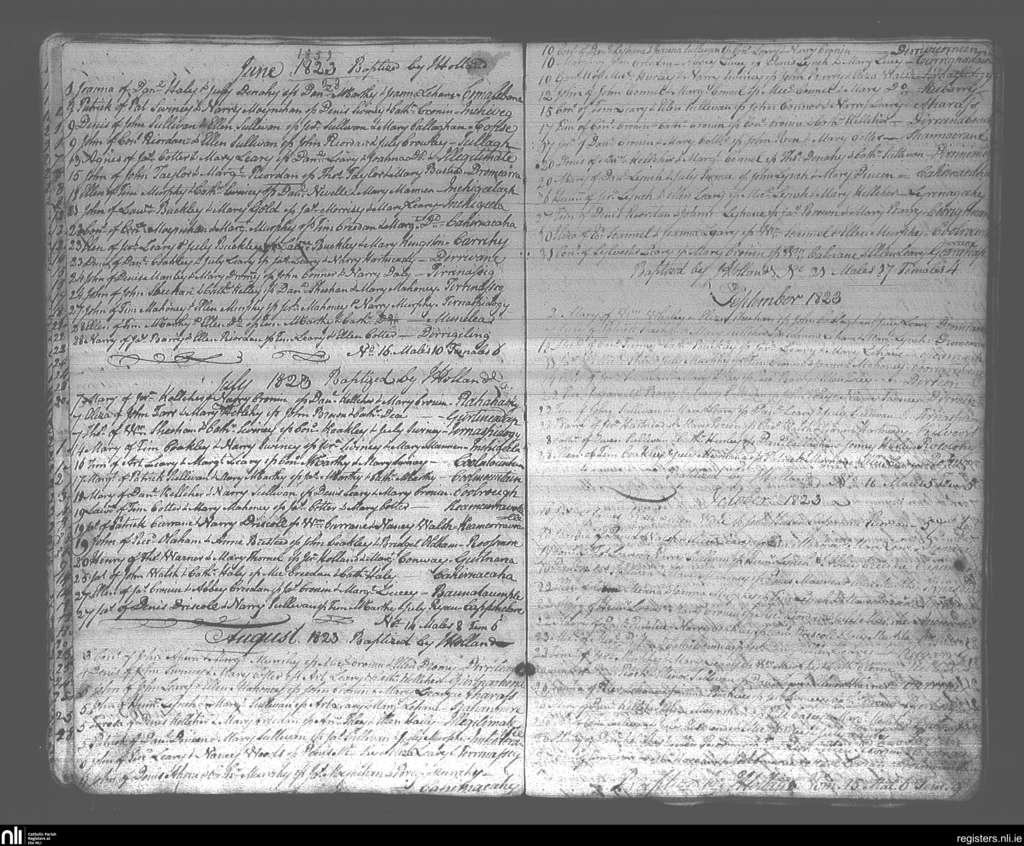 Iveleary; County of Cork; Diocese of Cork and Ross. Baptisms, June 1823 to Oct. 1823