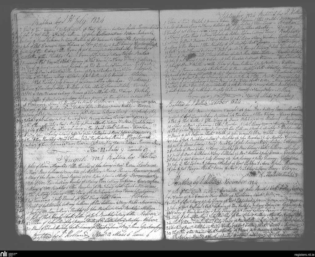 Iveleary; County of Cork; Diocese of Cork and Ross. Baptisms, July 1824 to Nov. 1824