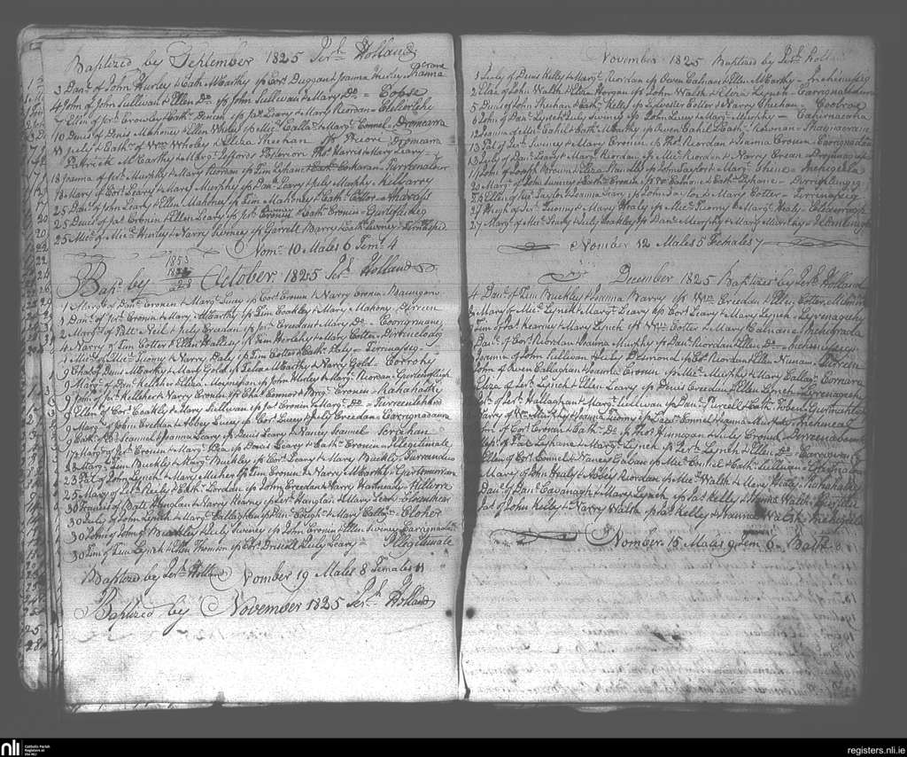 Iveleary; County of Cork; Diocese of Cork and Ross. Baptisms, Sep. 1825 to Dec. 1825