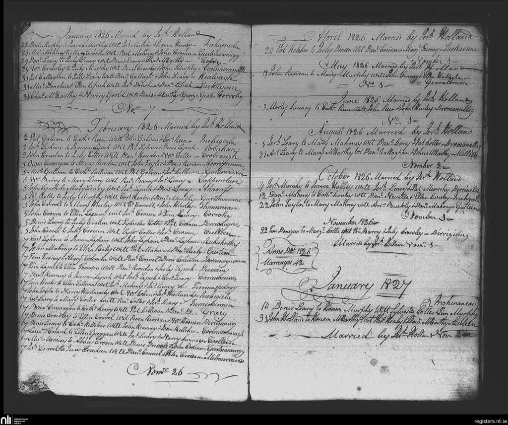 Iveleary; County of Cork; Diocese of Cork and Ross. Marriages, Jan. 1826 to Jan. 1827