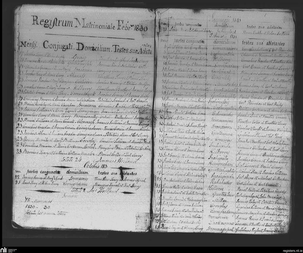 Iveleary; County of Cork; Diocese of Cork and Ross. Marriages, Feb. 1830 to Feb. 1831