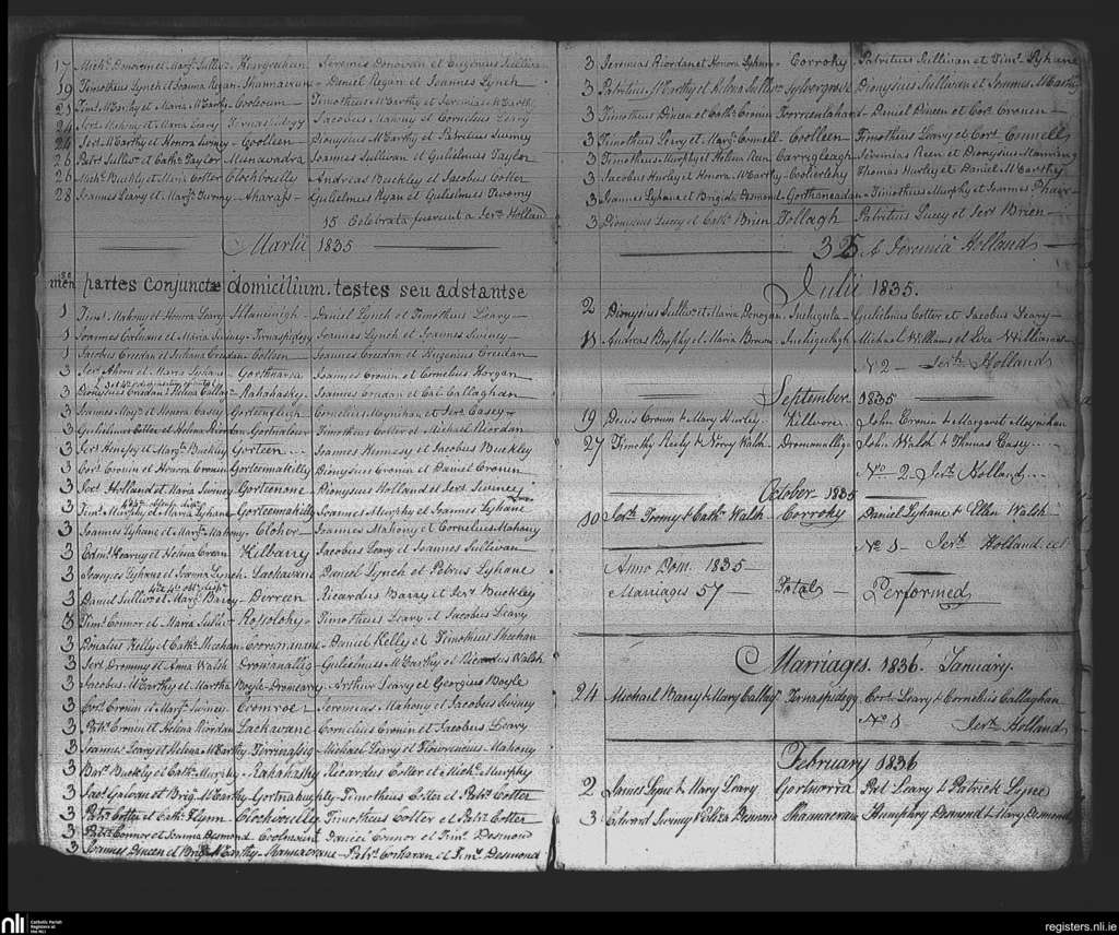 Iveleary; County of Cork; Diocese of Cork and Ross. Marriages, Mar. 1835 to Feb. 1836