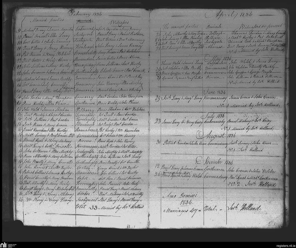 Iveleary; County of Cork; Diocese of Cork and Ross. Marriages, Feb. 1836 to Nov. 1836