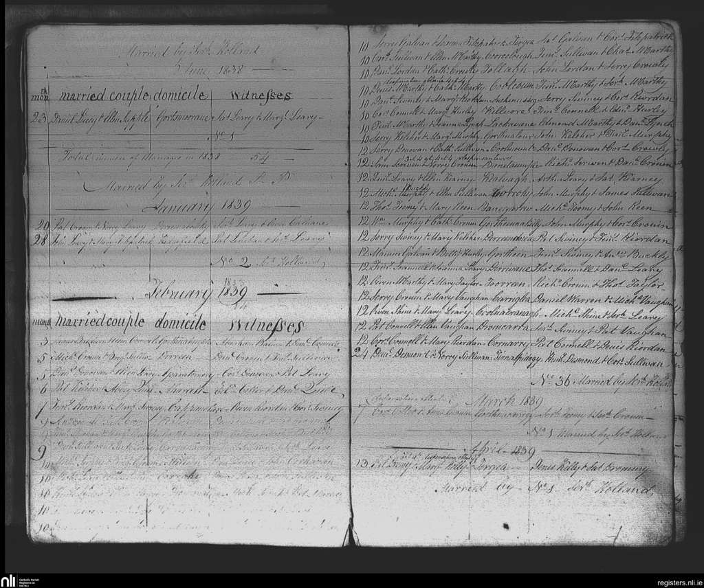 Iveleary; County of Cork; Diocese of Cork and Ross. Marriages, June 1838 to Apr. 1839