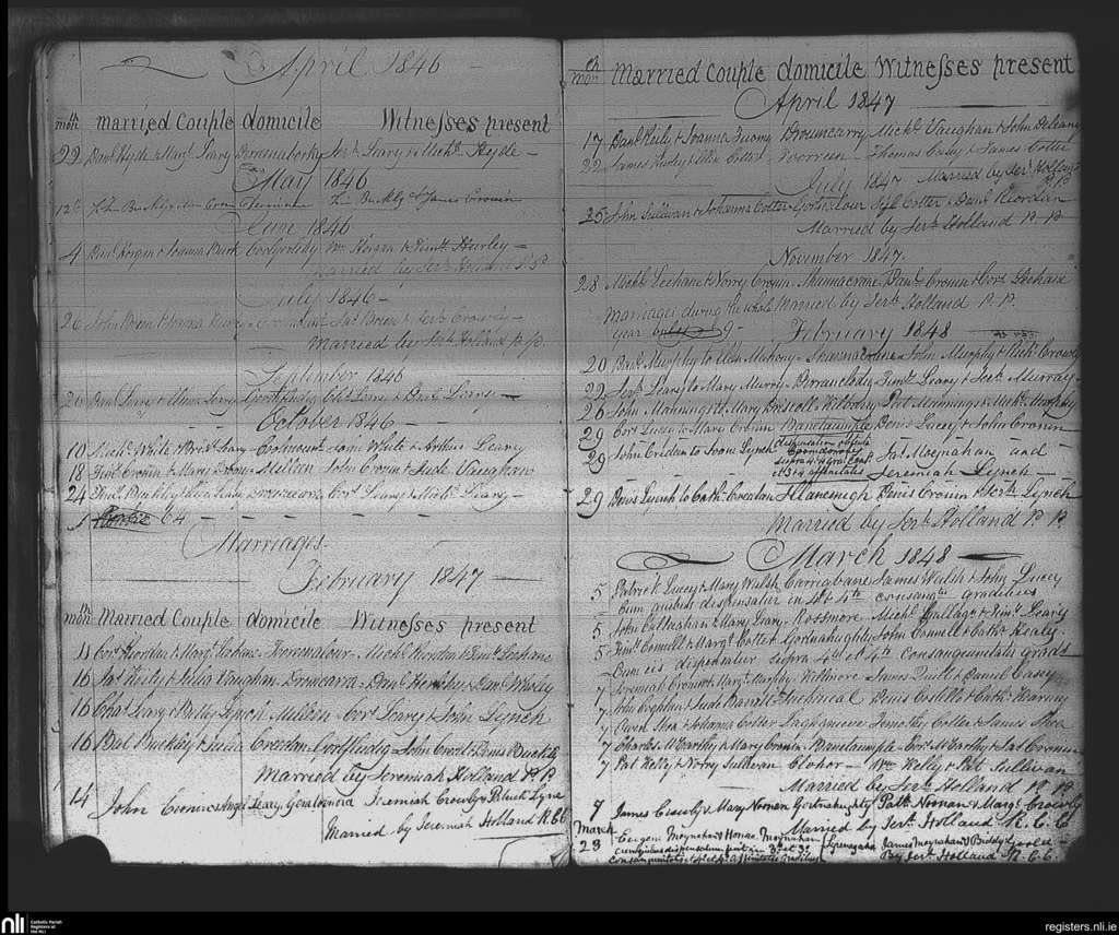 Iveleary; County of Cork; Diocese of Cork and Ross. Marriages, Apr. 1846 to Mar. 1848