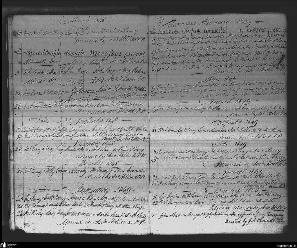 Iveleary; County of Cork; Diocese of Cork and Ross. Marriages, Mar. 1848 to Feb. 1850