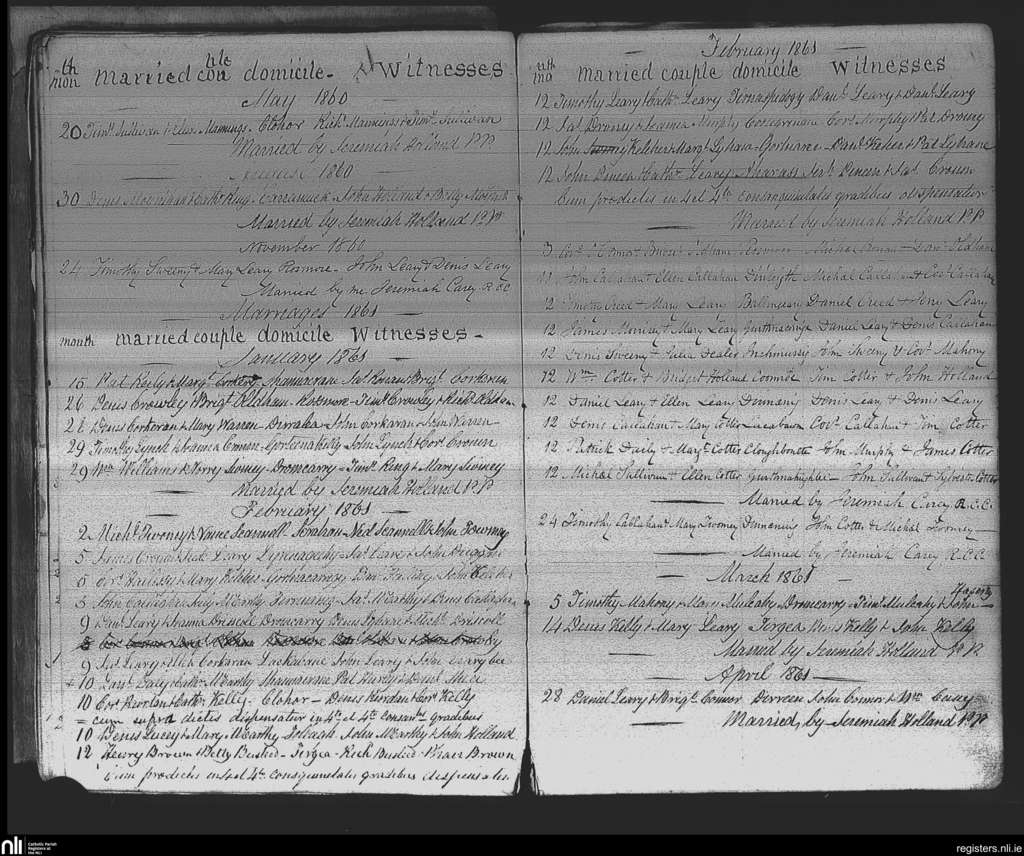 Iveleary; County of Cork; Diocese of Cork and Ross. Marriages, May 1860 to Apr. 1861