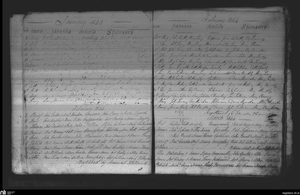 Iveleary; County of Cork; Diocese of Cork and Ross. Baptisms, Jan. 1844 to Mar. 1844