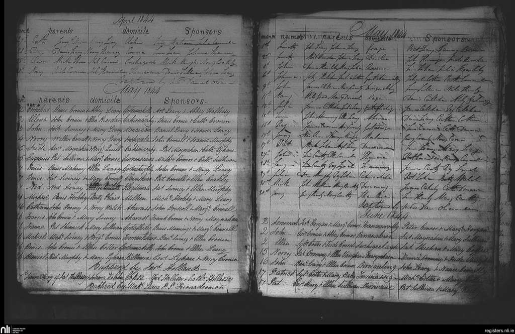 Iveleary; County of Cork; Diocese of Cork and Ross. Baptisms, Apr. 1844 to June 1844