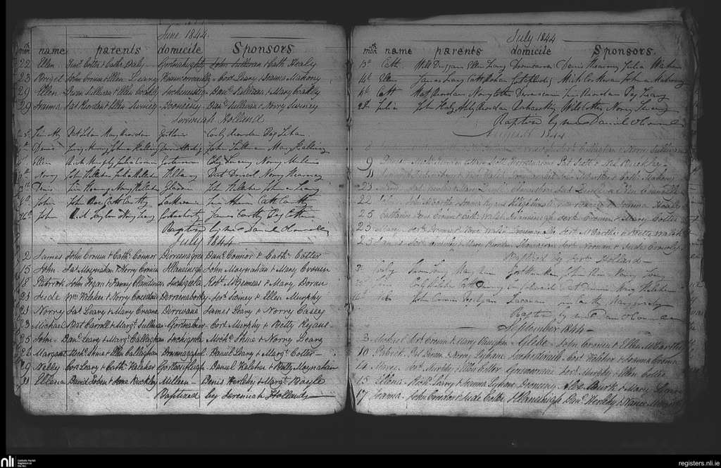 Iveleary; County of Cork; Diocese of Cork and Ross. Baptisms, June 1844 to Sep. 1844