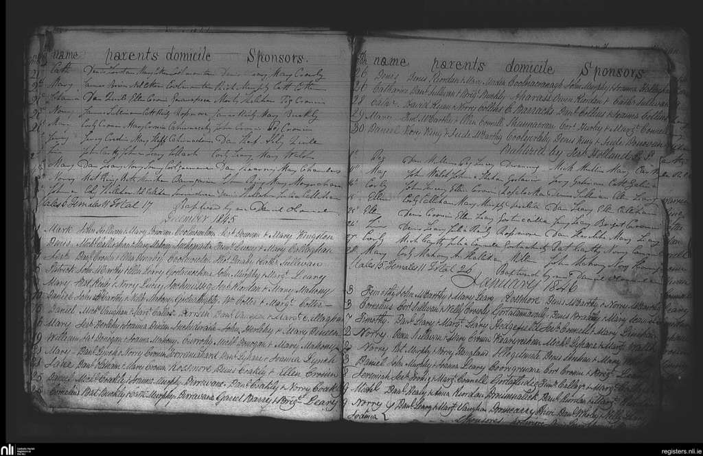Iveleary; County of Cork; Diocese of Cork and Ross. Baptisms, Nov. 1845 to Jan. 1846